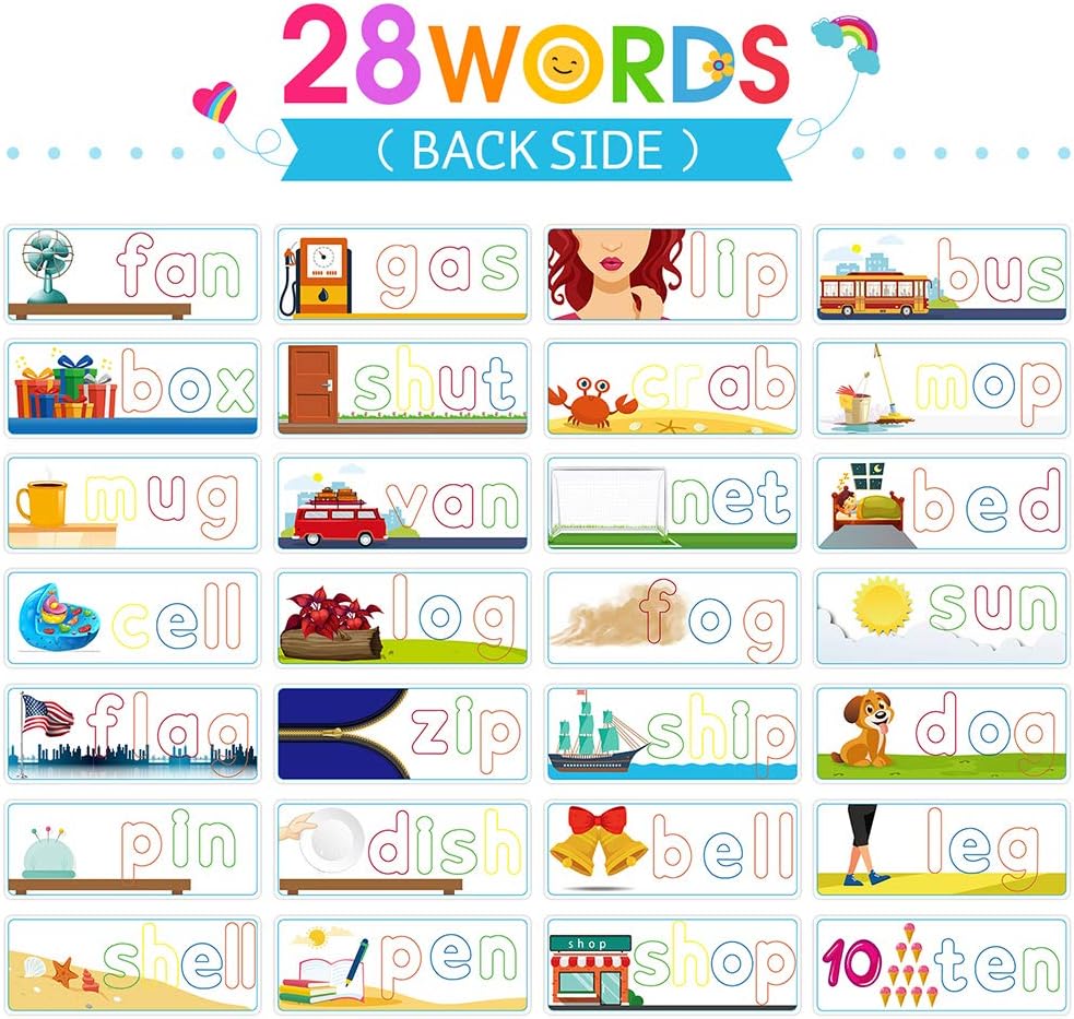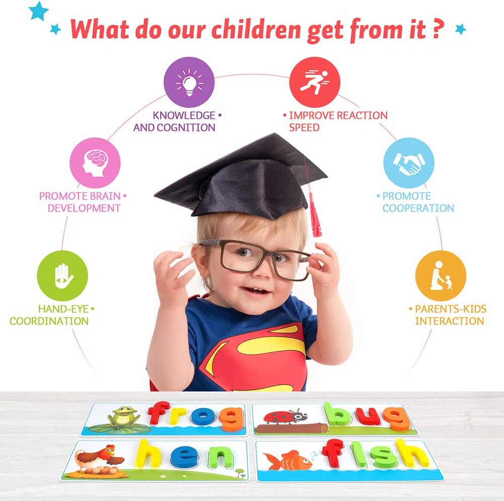 Help Kids Learn Alphabet: We pay more attention to refined design. With 56 rich scenes and 56 most commonly used Cvc sight words, help children develop memory and brain thinking by establishing connections. There is nothing better than learning thru play.