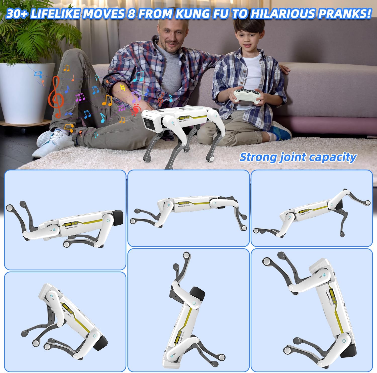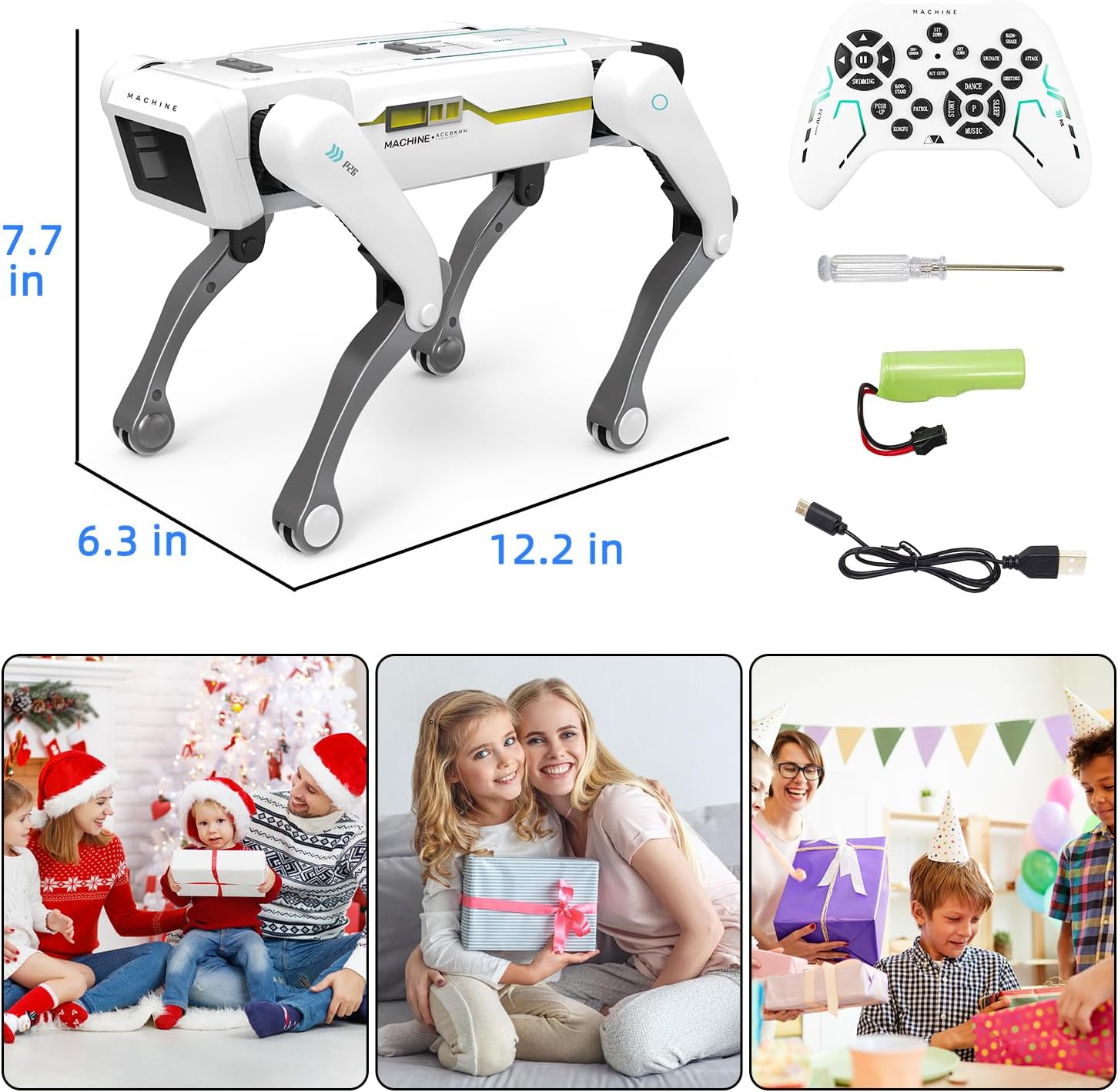 Interactive Smart Robot Dog – Designed with strong joint and advanced mechanics, this smart AI dog can perform complex actions like kungfu, patrol, act cute, surrender,hand-stand, get down and so on. Besides, it can dance, play music and tell story, a wonderful interactive robot toys