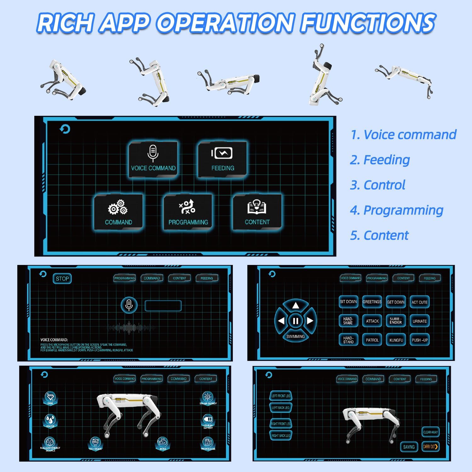 Voice Commands, APP & Remote Control – You can control this robot puppy via simple English voice commands, physical remote or smart dedicated app. What’s more, The smart robot dog supports programming, you can customize its actions as you like, which can help to spark kids’ interest in STEM