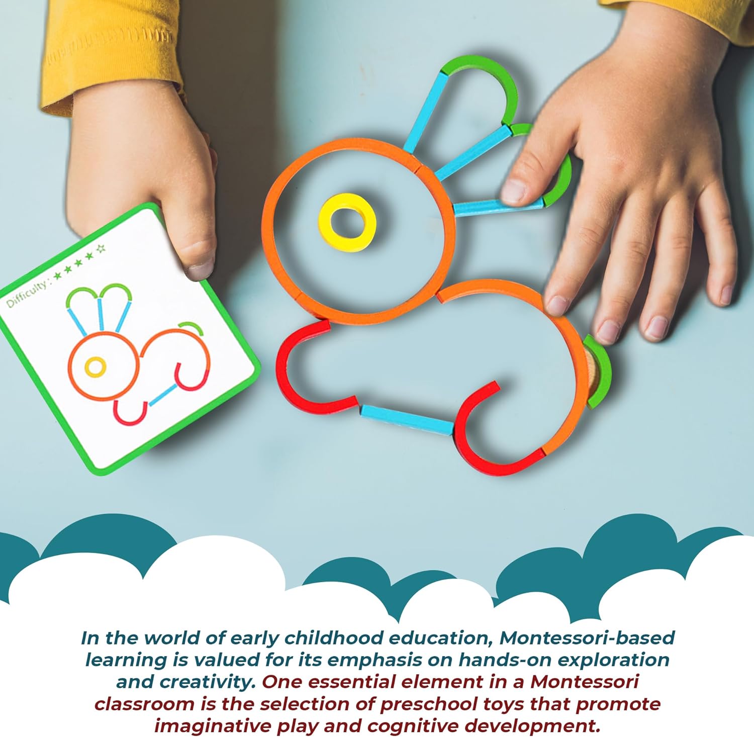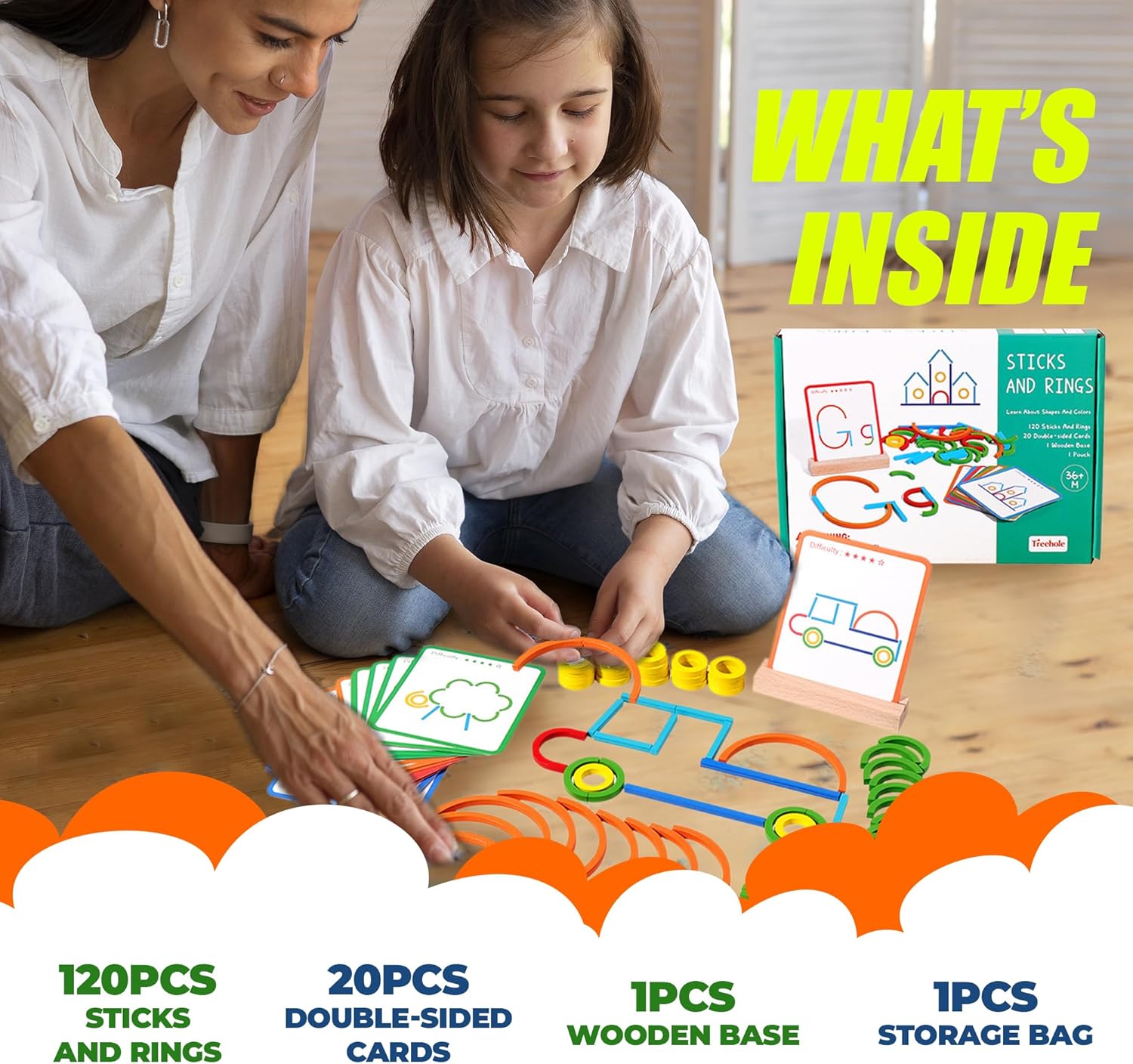 Encourage your child’s imagination with the freedom to create patterns following included cards or invent designs using sticks and rings. This toy is designed for independent exploration or collaborative play with parental involvement.